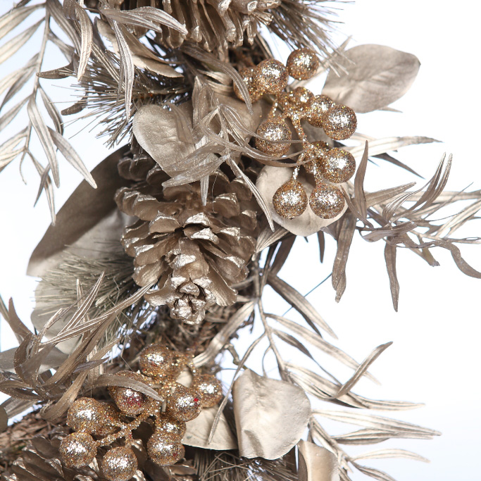 CORONA PIÑO Y PIÑAS PLATA ARTIFICIAL ø 40CM