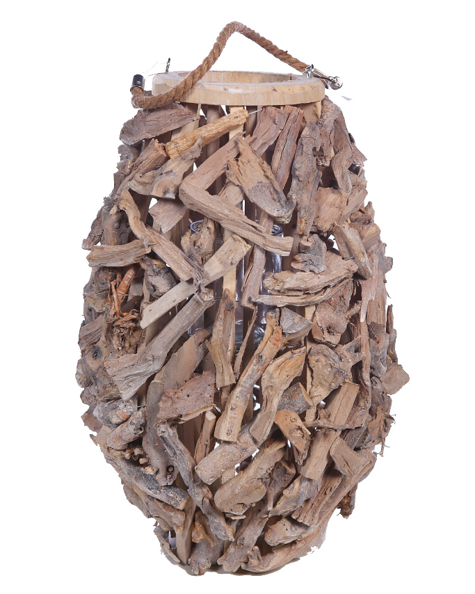 FAROL PARA VELAS CORTEZA PINO 48CM